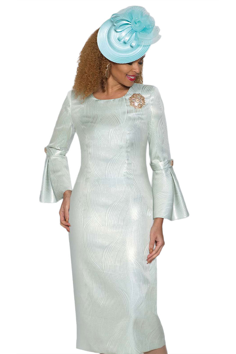 Elegant fine jacquard dress designed for church and special occasions. This ladies' church outfit features a fully lined construction for comfort and durability. Includes a stunning rhinestone brooch accent that adds sophistication to your look. Perfect for Sunday service, religious events, or formal gatherings. The quality tailoring and refined details make this a timeless addition to any churchwear wardrobe.