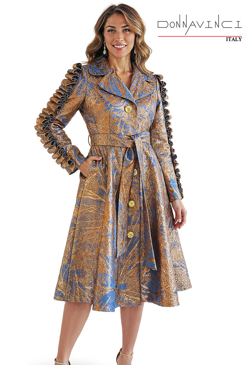Elevate your Sunday best with the Donna Vinci Church Dress 12246, a stunning piece that combines timeless elegance with modern flair. This dress features eye-catching novelty fabric that commands attention, while delicate ruffles adorning the sleeves add graceful movement and dimension. Updated buttons provide a polished finishing touch that elevates the entire look. Perfect for church services, special occasions, or any event where you want to feel confident and beautifully dressed. The thoughtful design details ensure you'll stand out for all the right reasons while maintaining the sophistication expected of quality church wear.