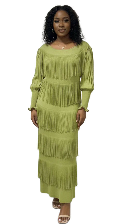 Elevate your wardrobe with this stunning tiered fringe knit midi dress—a versatile piece that transitions seamlessly from Sunday service to special occasions. The textured fringe detailing adds movement and dimension, while the flattering midi length offers modest elegance with contemporary flair. Crafted from quality knit fabric, this dress provides comfortable all-day wear without sacrificing style. Perfect for church events, family gatherings, or any occasion where you want to look polished and put-together. Invest in a dress that combines timeless sophistication with modern design.