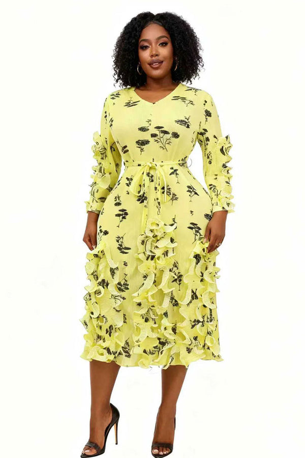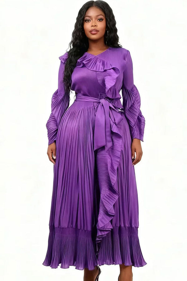 Ruffle Pleated Midi Dress 83014