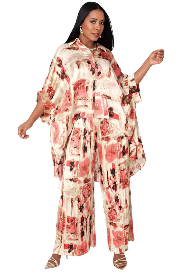 Pleated Skirt Suit 83008-Brown Multi