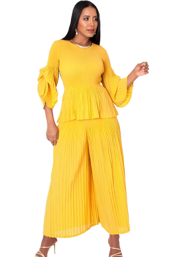 Sleeve Pleated Pantset 82909-Mustard