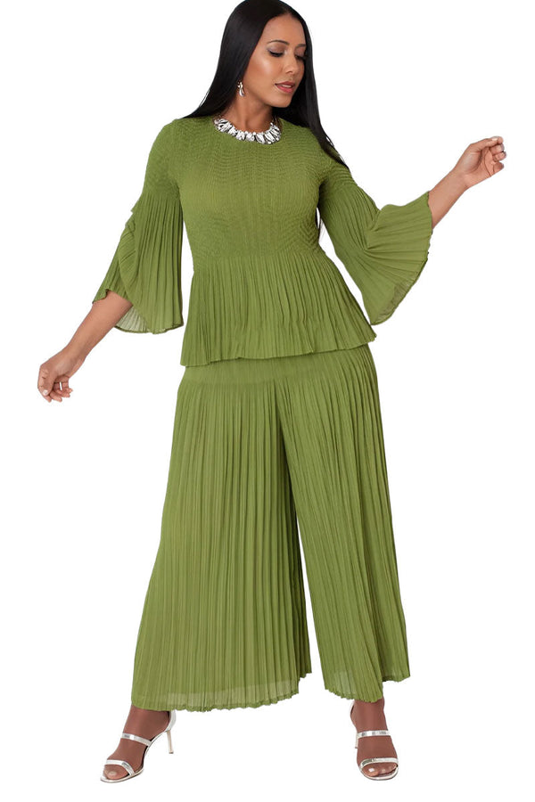 Sleeve Pleated Pantset 82909-Olive